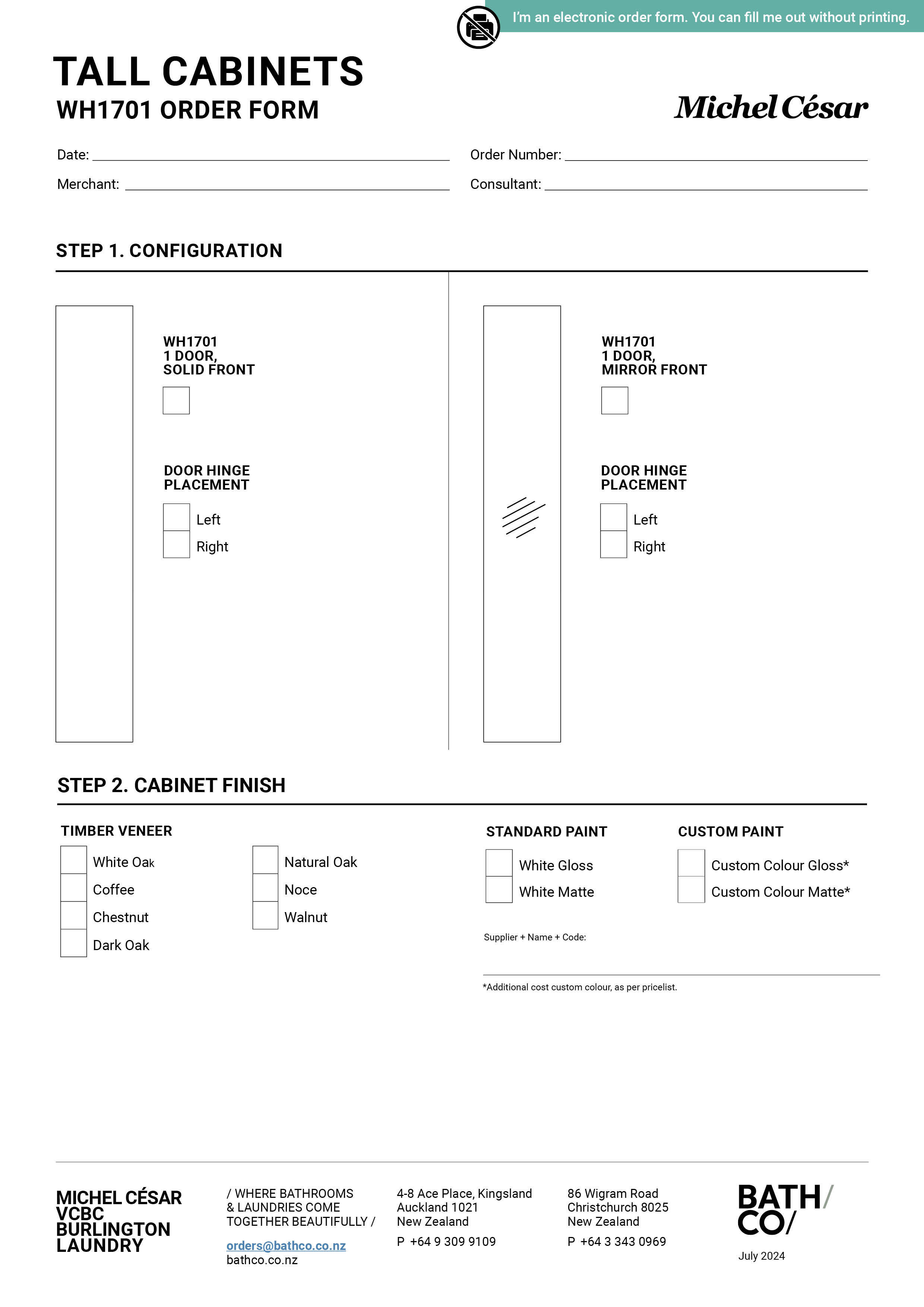 WH1701 Tall Cabinet Order FormDownload PDF -