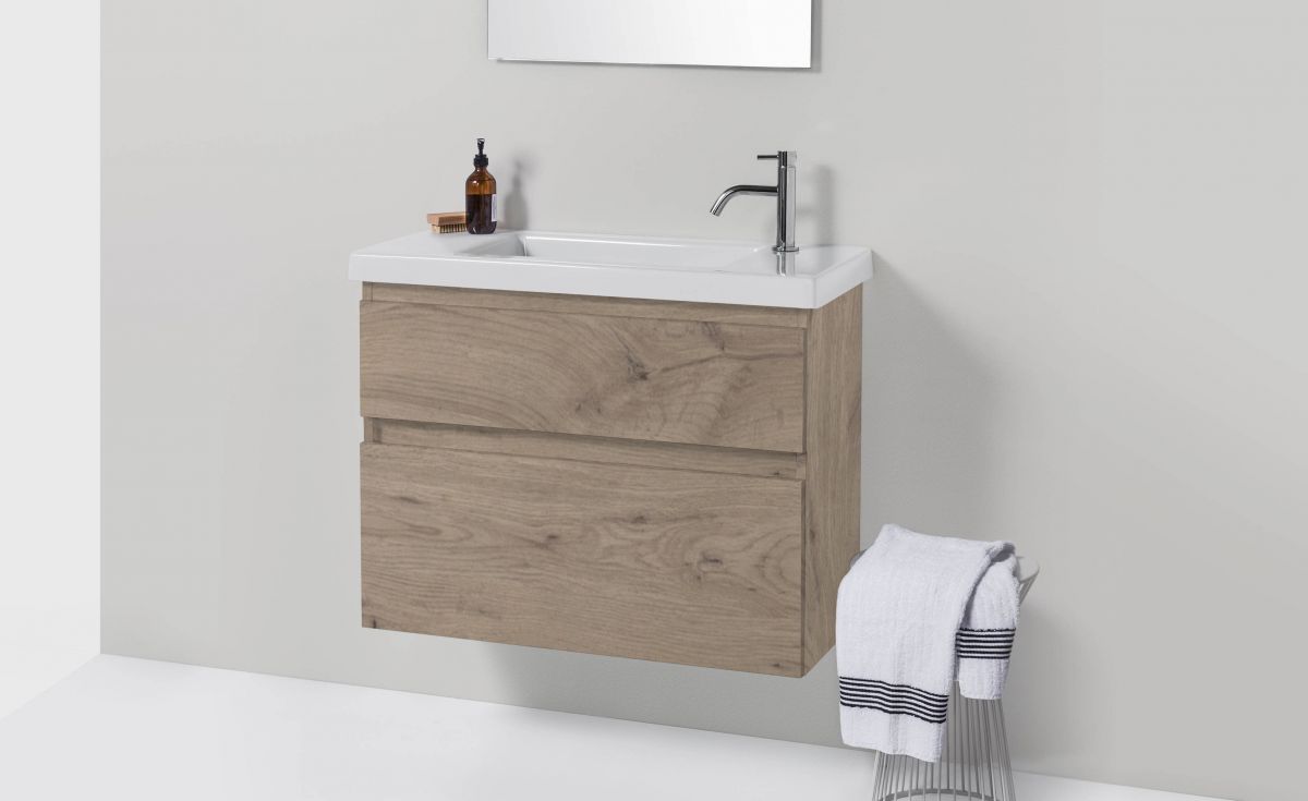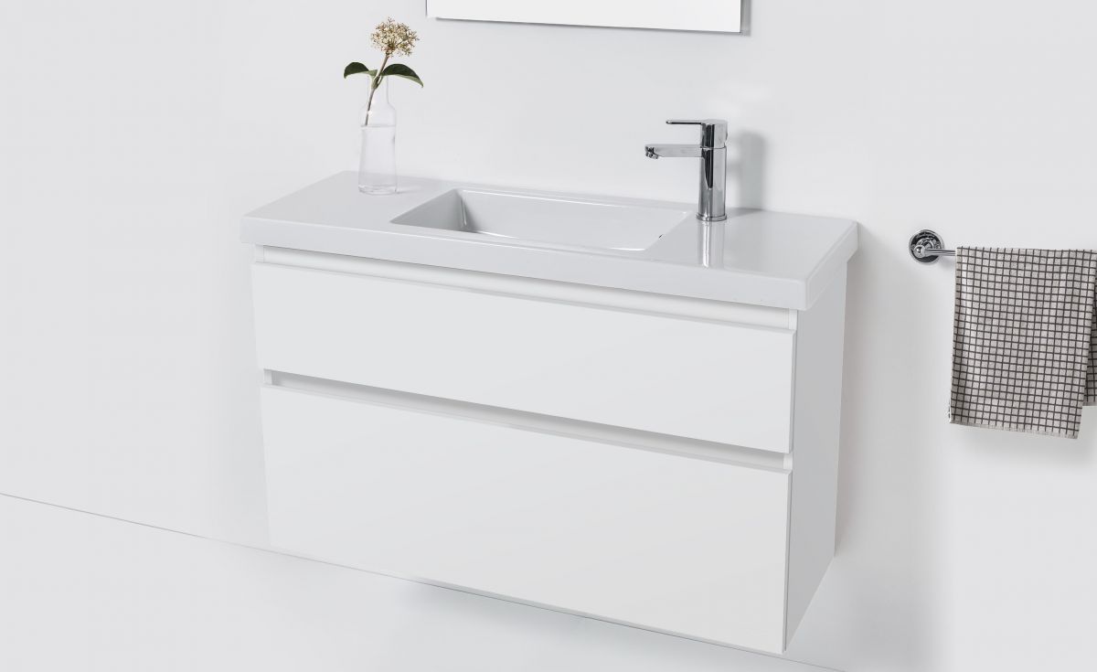 The Cangas Slim streamlined design features a slim depth of 355 mm, while the offset tap provides more bench space, perfect for maximising space and function in small bathrooms.